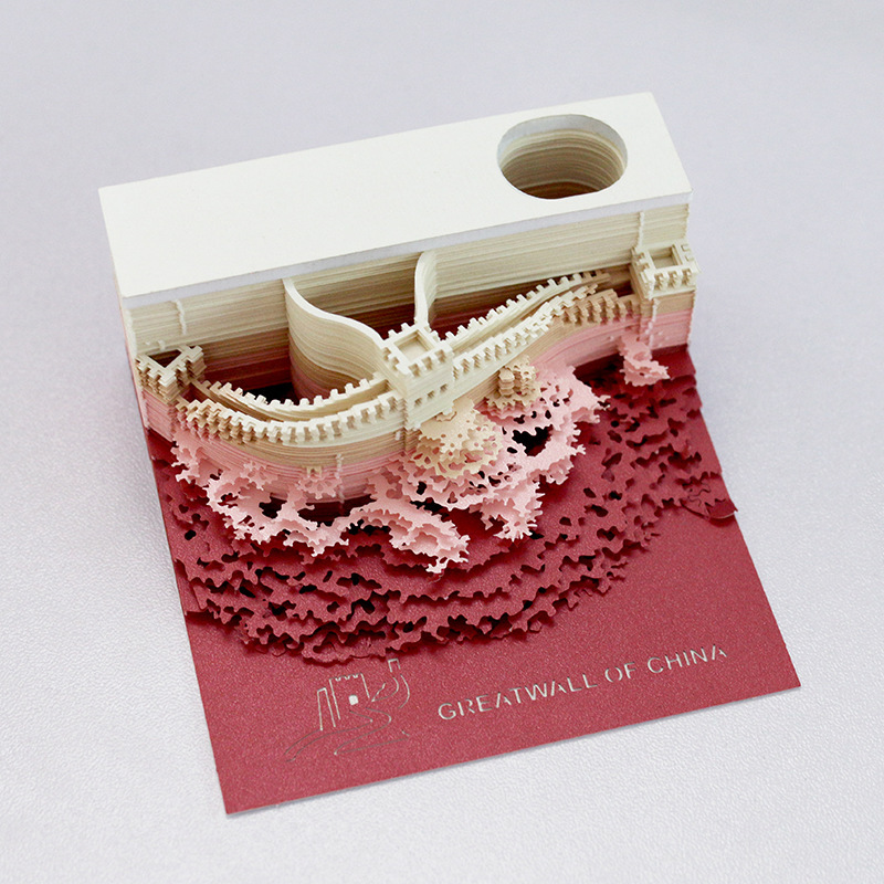 Each note reveals more of a finely detailed three-dimensional Great Wall paper carving. As a result, the sticky note pad slowly transforms into a striking desk ornament. You can write reminders, messages, and daily notes while enjoying the evolving structure.